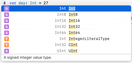 스위프트에 Int 종류에는 다음 것들이 있다.