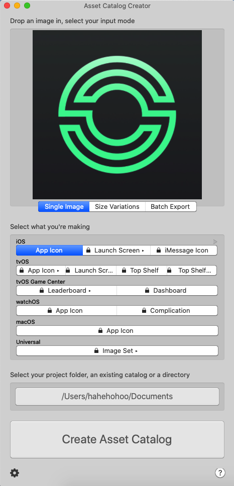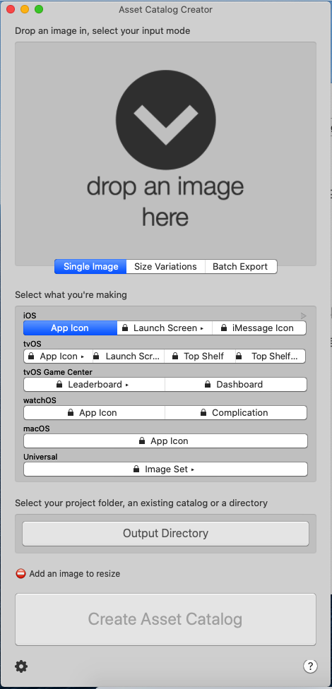 다운 받은 asset catalog creator 을 열고 이미지를 드래그앤 드롭한다.