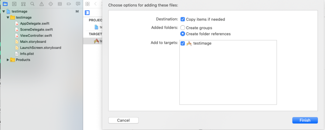copy items if needed 체크하고 Finish를 누른다.