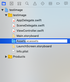 프로젝트에 기존에 있던 Assets.xcassets를 지운다.