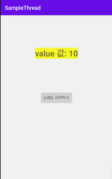 앱을 실행하고 버튼을 누르면 화면에 value 값이 표시되고 계속 변하는 것을 확인할 수 있습니다.