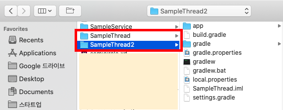 앞에서 만들었던 프로젝트에 핸들러를 적용해보기 위해 프로젝트(SampleThread)를 복사하겠습니다.