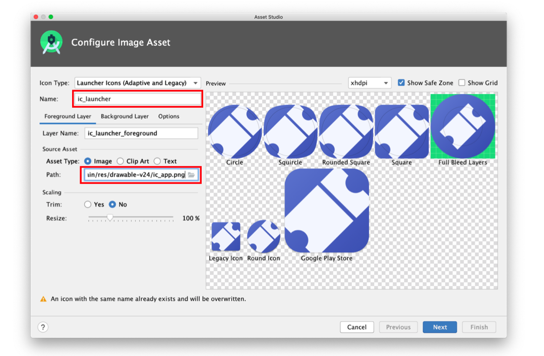 6. Mainfest파일에서 icon명을 변경해줍니다.