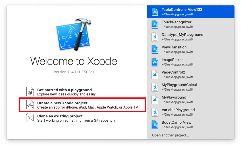 STEP 1 Xcode 실행하고 Create a new Xcode project를 클릭하여 새 프로젝트 만들기