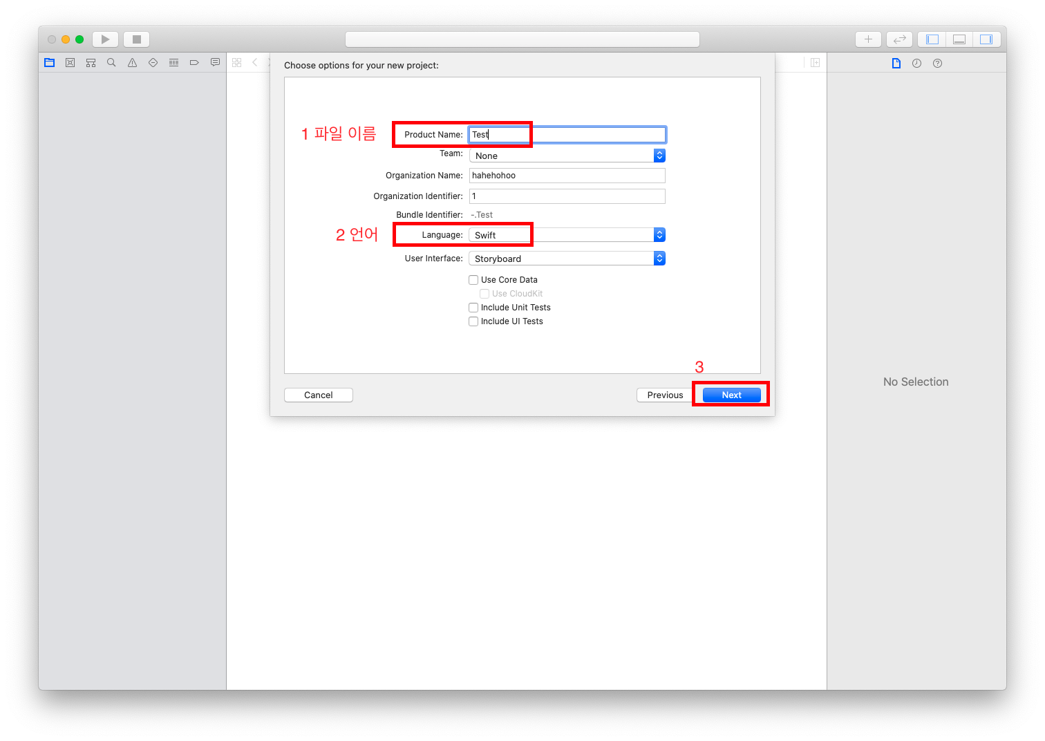 [Single View App] 를 선택하고 Next를 눌러주세요.