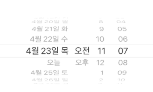- 데이트 피커는 시간형, 날짜형, 날짜&시간형, 카운트다운형 이렇게 네 가지 모드를 제공합니다.