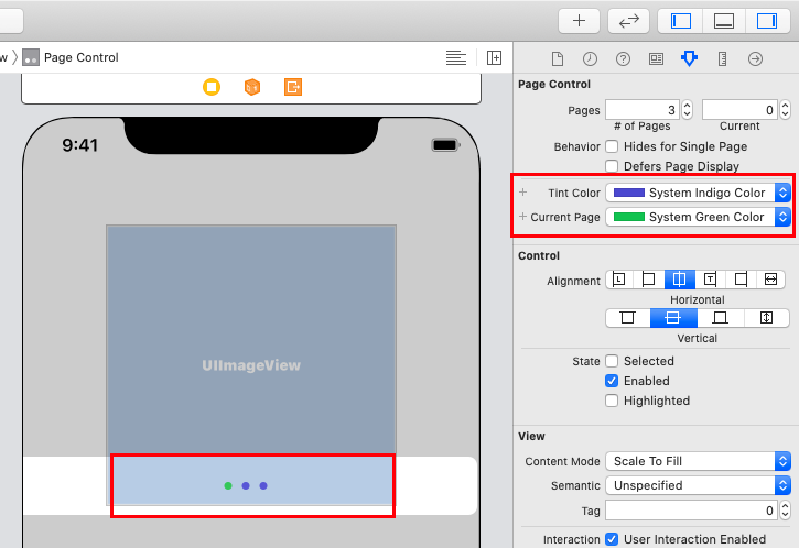 - Tint Color : 페이지 컨트롤의 페이지를 표시하는 부분의 색상