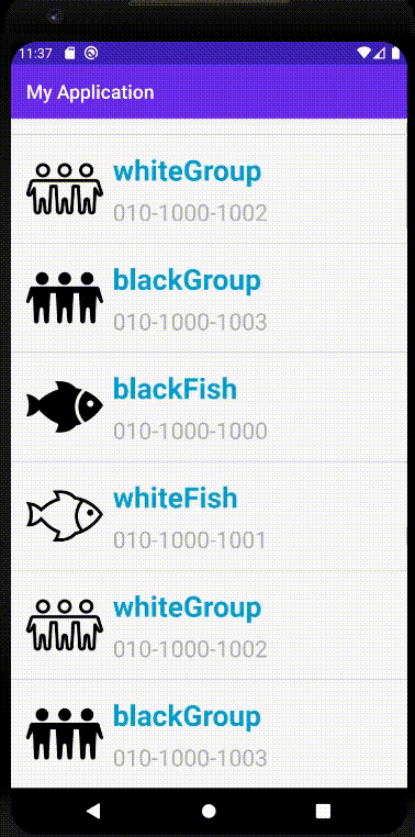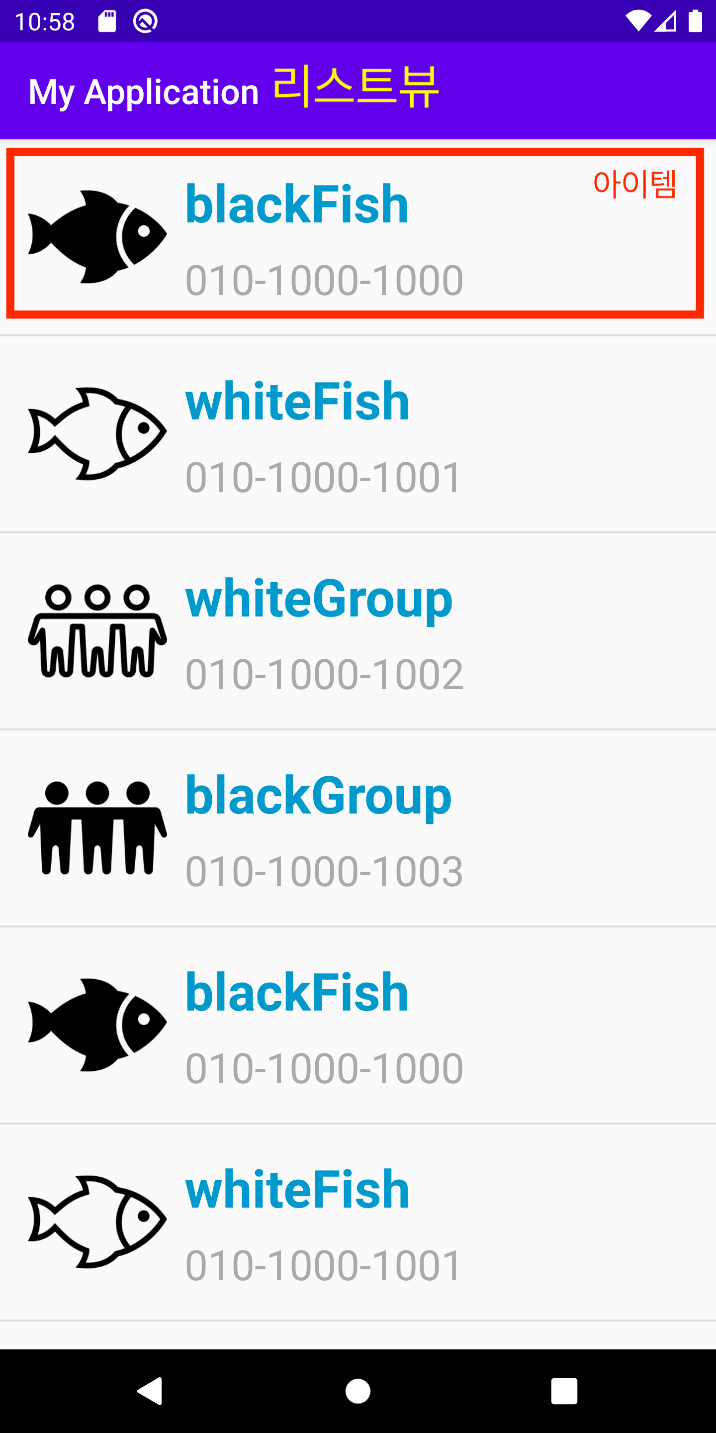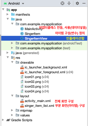 adapter.addItem(new SingerItem("blackFish", "010-1000-1000",R.drawable.icon01));