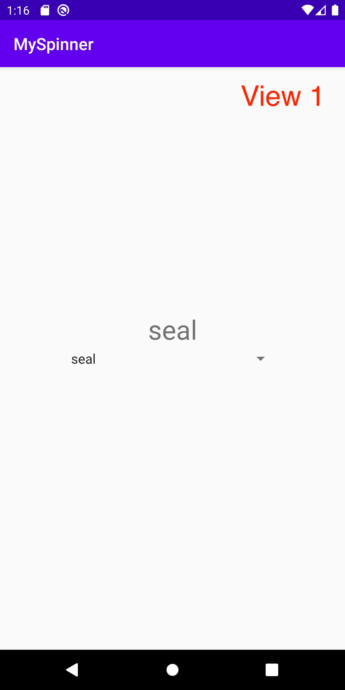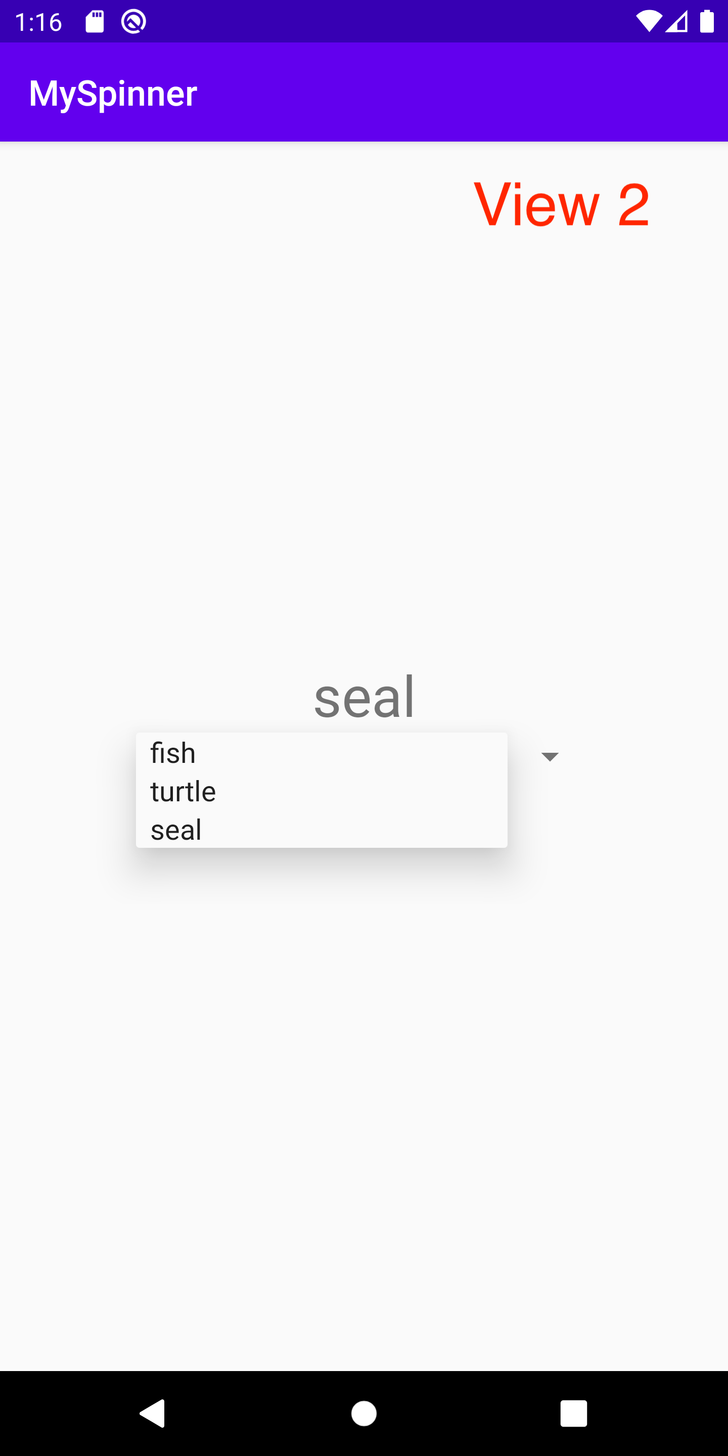 스피너를 사용하면 선택하기 전 View1과 선택하는 중 View2가 있습니다.