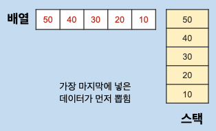배열과 달리 스택은 삽입과 삭제에 대한 규칙이 있습니다.