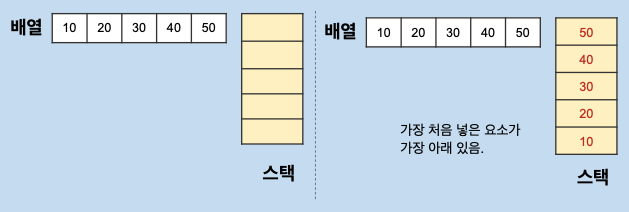 스택의 요소를 하나씩 뽑아서 배열에 저장합니다. 그럼 배열의 요소가 뒤집어집니다.