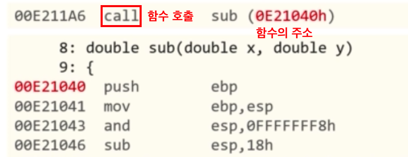 어셈블리어에서 어떤 함수를 호출하면 사실상 그 함수의 주소로 이동합니다.