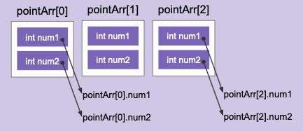 struct point pointArr[3]; // 크기 3인 point형 구조체 배열 선언