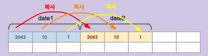 date = get_dday(); 이 부분을 보면 구조체 변수 대상으로 대입 연산이 가능하다는 것을 알 수 있습니다.