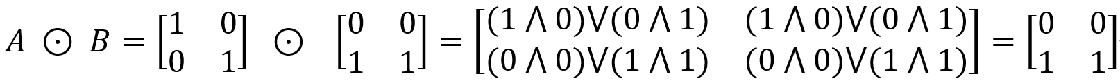 - 부울곱(boolean product)은 행렬의 곱셈 방식과 논리합, 논리곱의 연산을 적용하여 수행합니다.