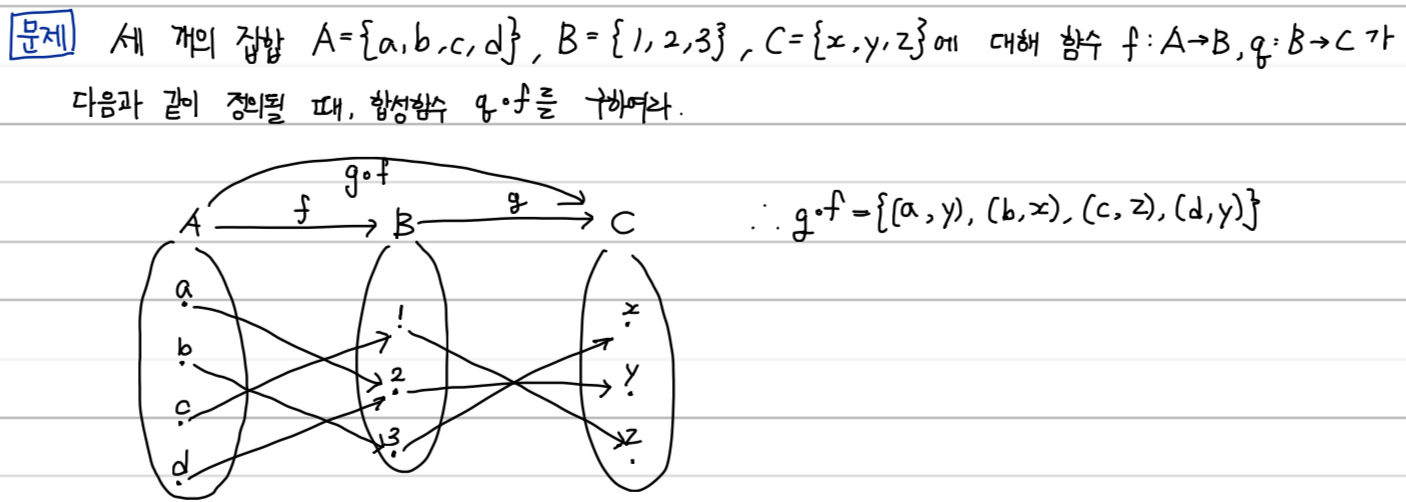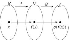 두 함수 f: A → B와 g:B → C가 있을 때, 집합 A의 각 원소를 집합 C의 원소에 대응하는 새로운 함수