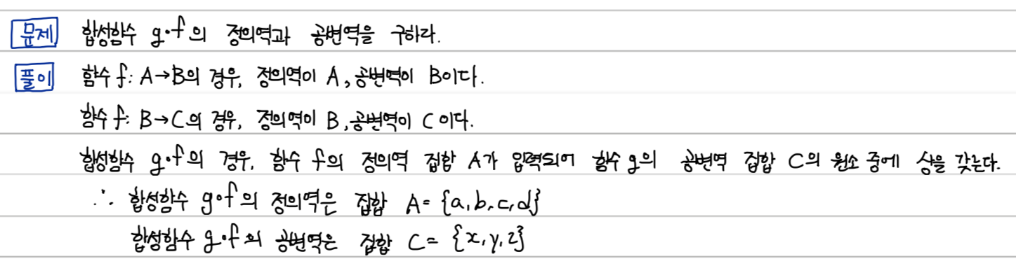 합성함수는 표기를 주의해야 합니다. g º f라면 x를 함수 f에서 먼저 처리하고 그 결과를 함수 g에서 처리하여 결과를 얻습니다.