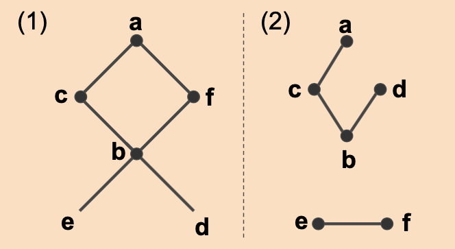 그래프의 꼭짓점들 중 a, b, c, d 와 e 혹은 f 간에는 경로가 존재하지 않는다 .
