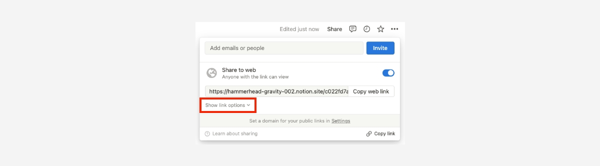 3 접근 범위를 정하기 위해 '링크 옵션(Show link options)를 클릭합니다.
