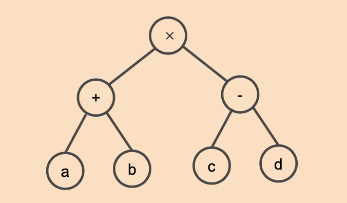 이진 트리는 수식을 표현하는 방법에도 사용할 수 있습니다. 예를 들어 (a + b) × (c - d)를 표현하면 아래와 같은 트리가 됩니다.