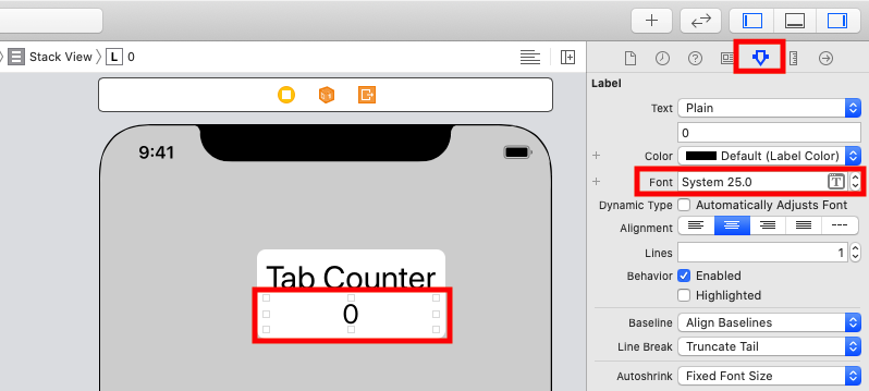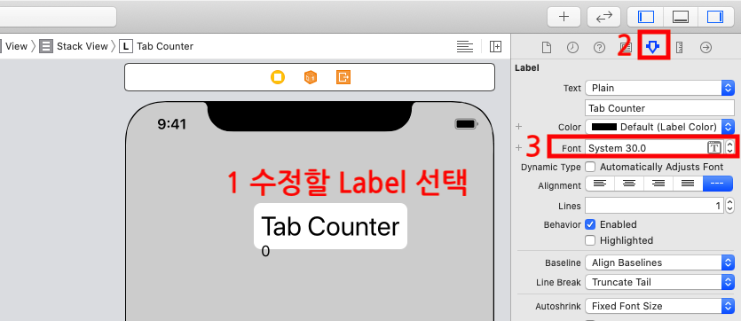 위 Label은 Tab Counter, 아래는 0으로 해줍니다.