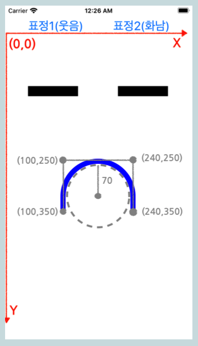 let circleEye2 = CGRect(x: 210, y: 100, width: 100, height: 100) // 시작 위치를 (210, 100)으로 설정하고, 너비 100px, 높이 100px인 원을 그립니다.