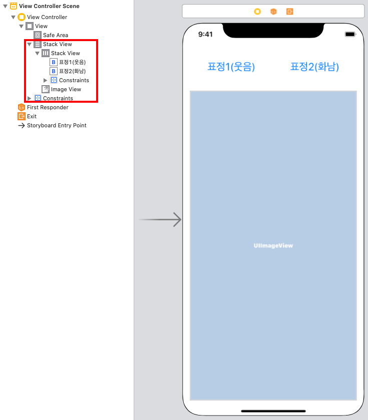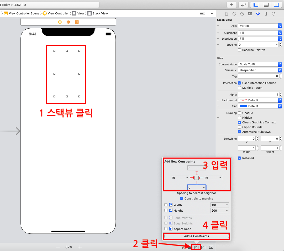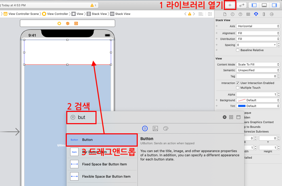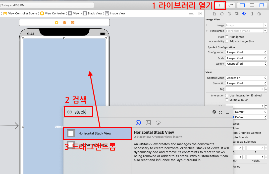 STEP4 스택뷰(Horizontal Stack View)를 추가합니다.