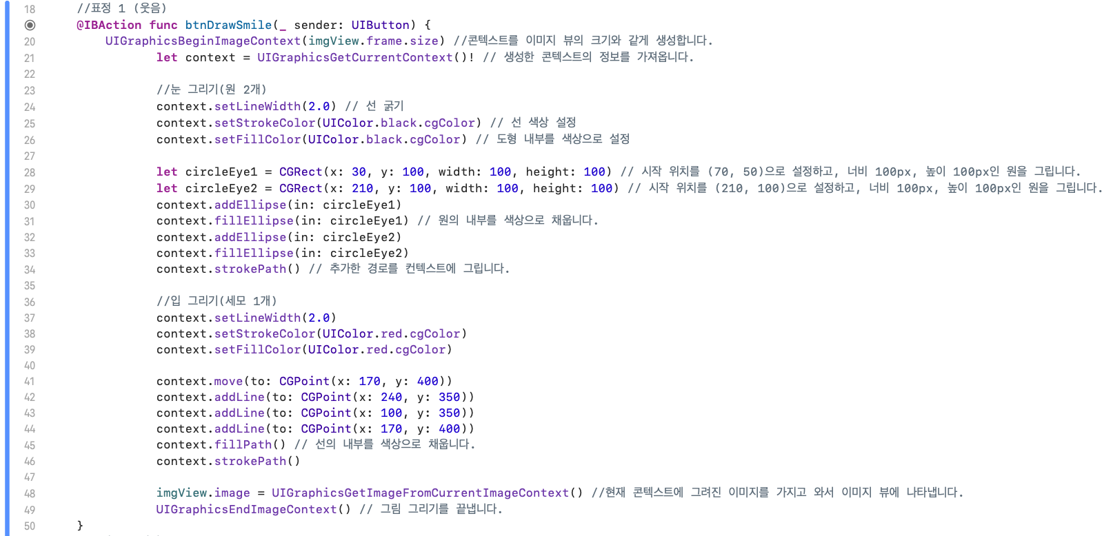 @IBAction func btnDrawSmile(_ sender: UIButton) {
