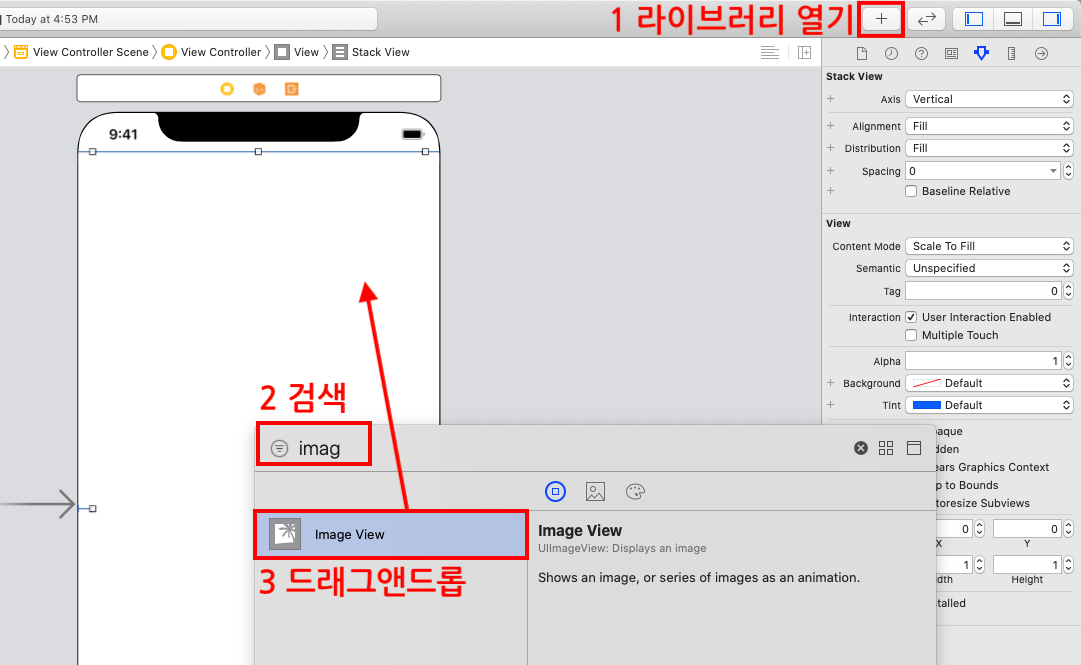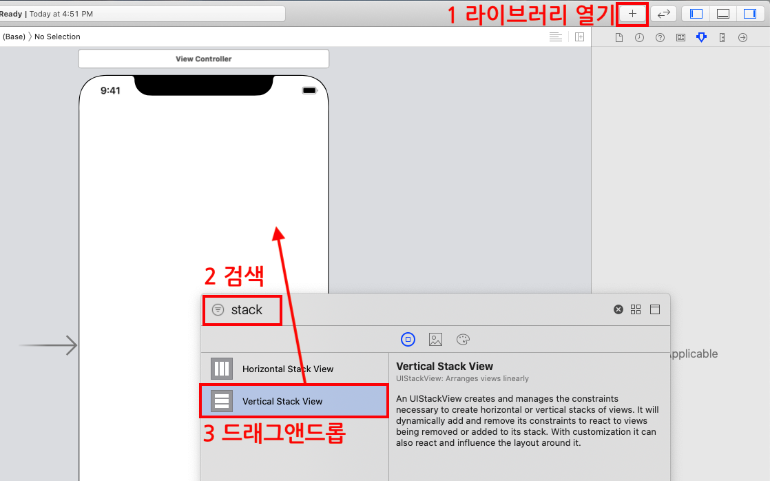 STEP1 스택뷰(Vertical Stack View)를 추가합니다.