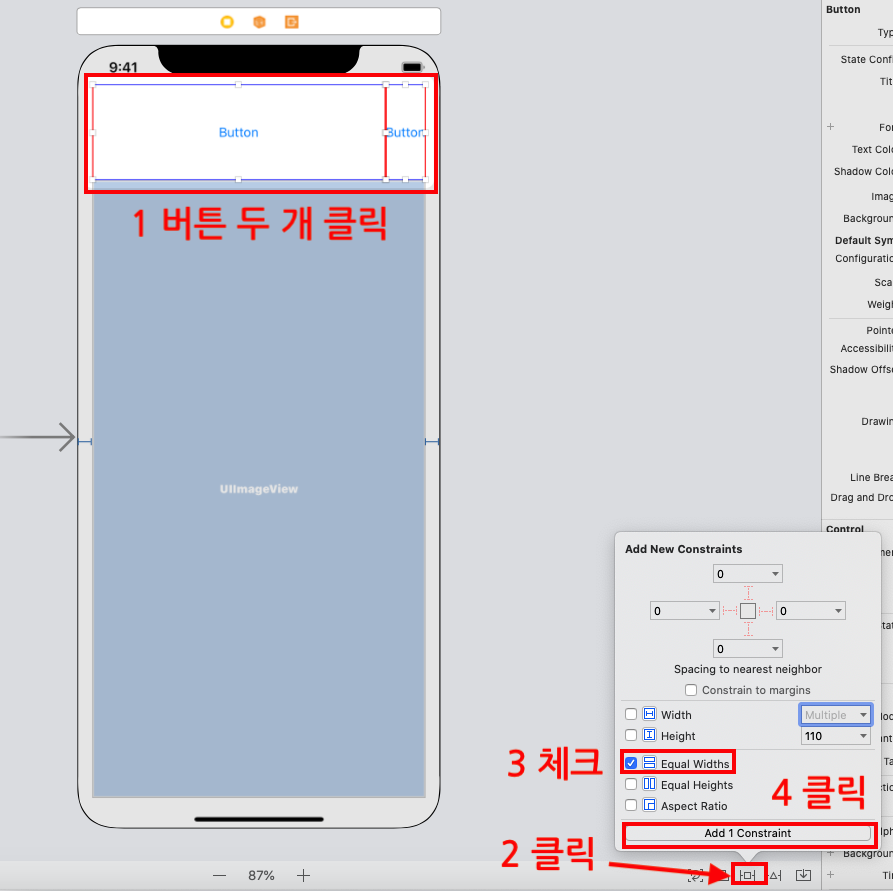 STEP6 버튼2개 너비를 같게 조정합니다.