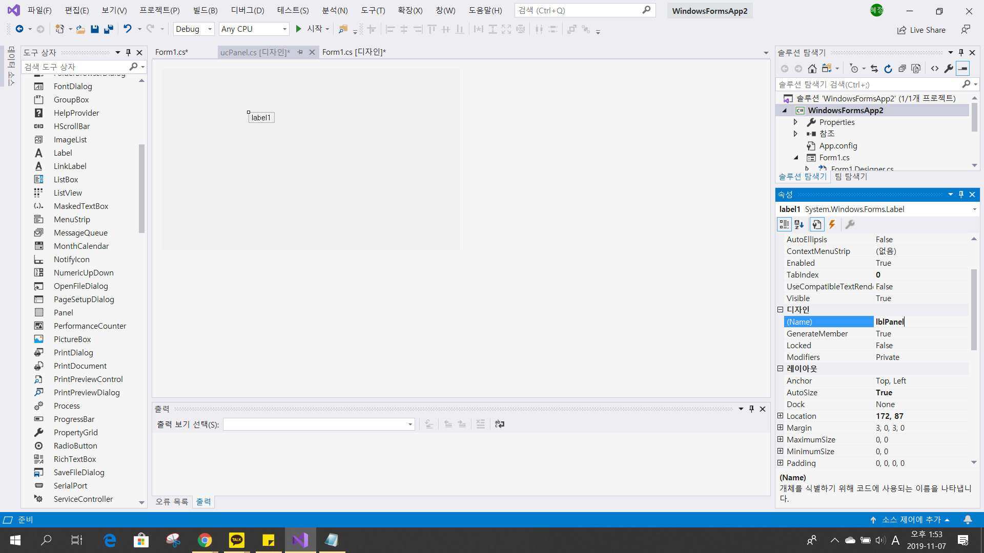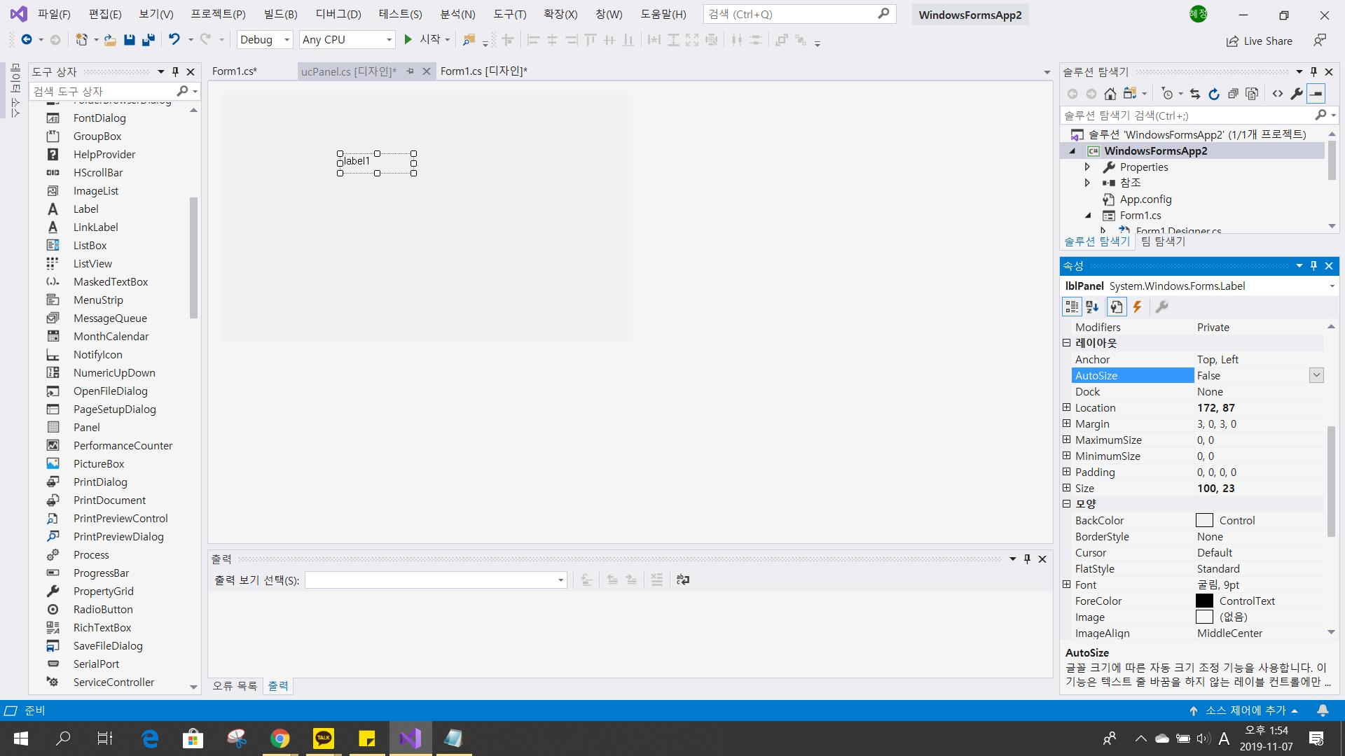 | [C# 실습 예제] 비주얼 스튜디오 2019 _사용자 정의 컨트롤 (0) | 2019.11.12 |