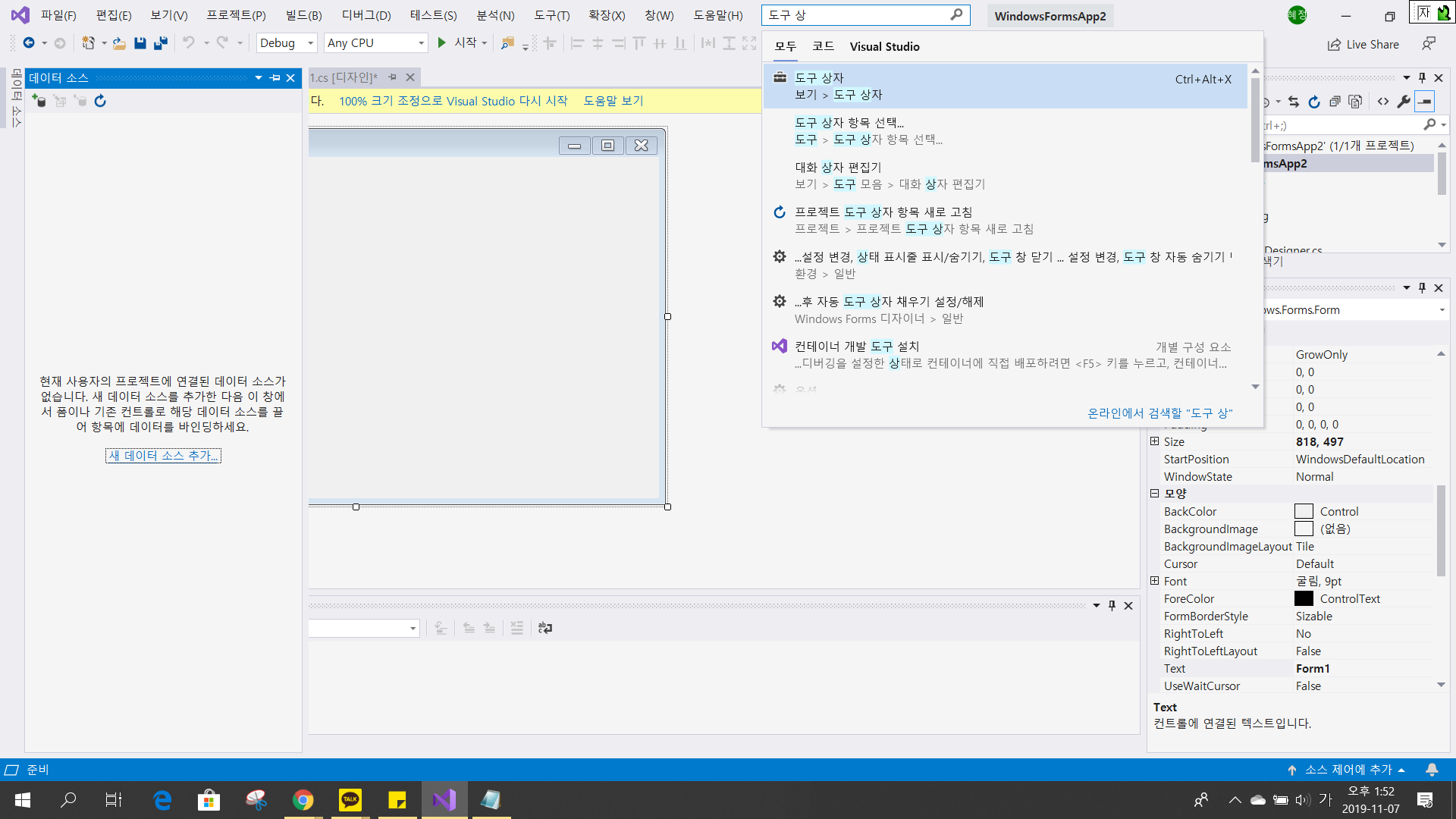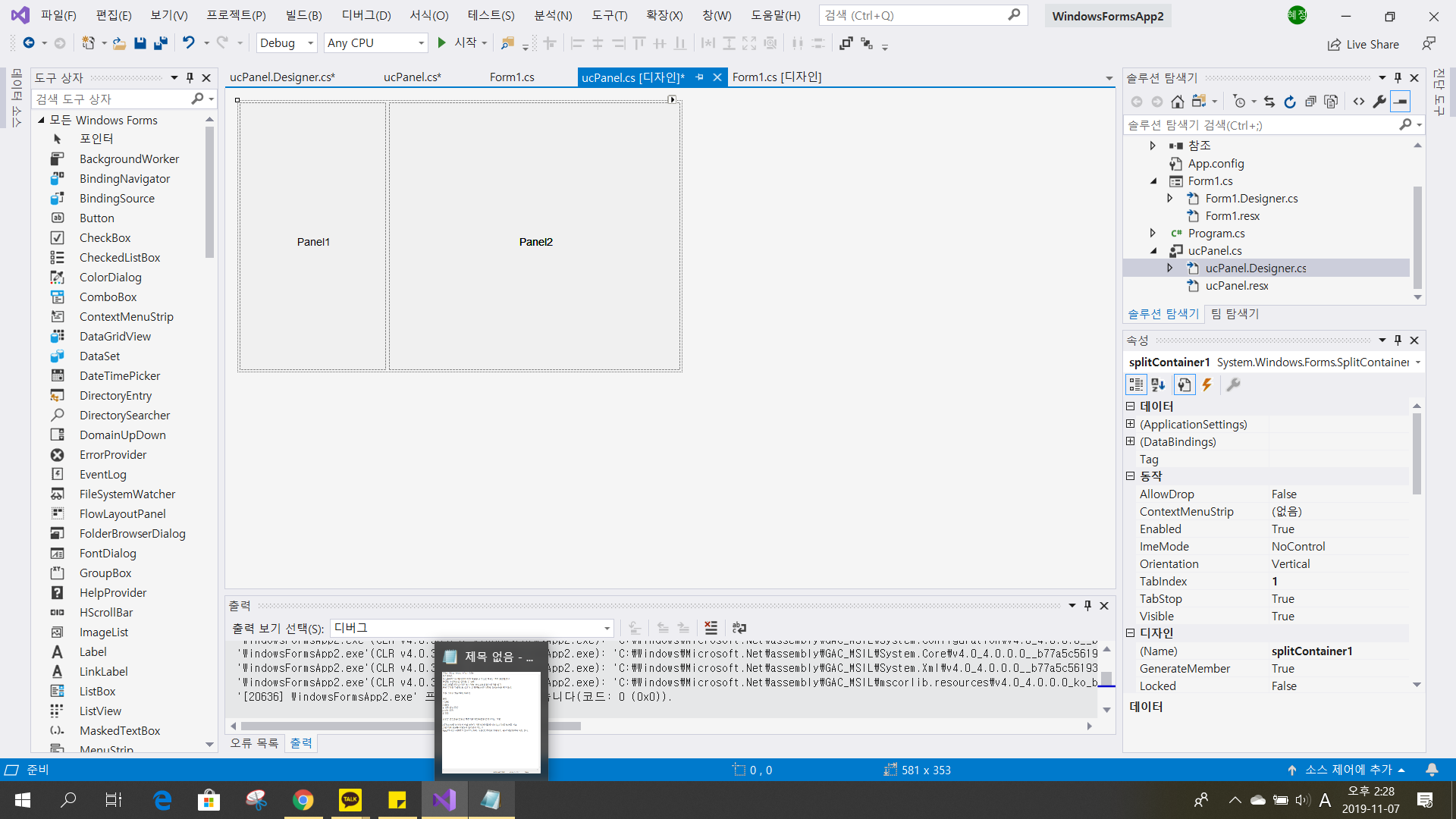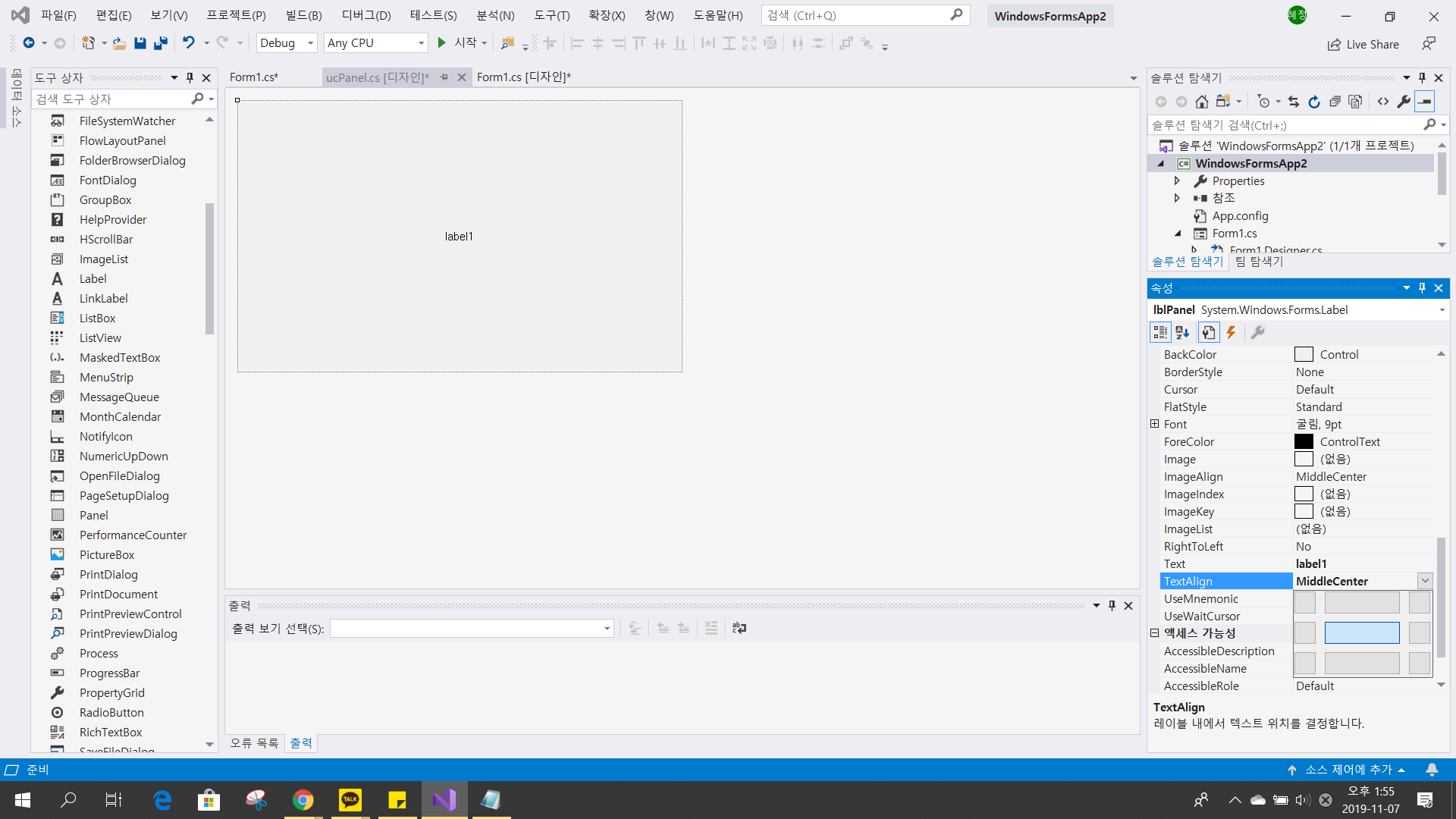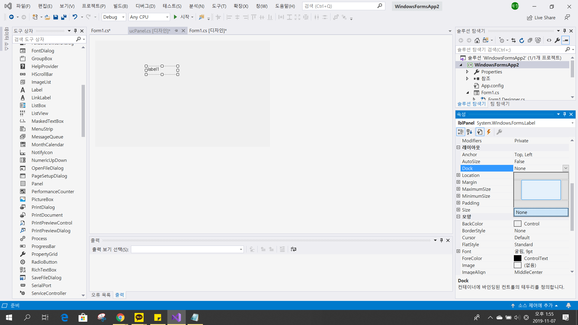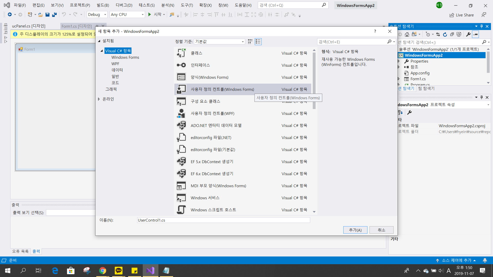 | [C# 실습 예제] 비주얼 스튜디오 2019 _사용자 정의 컨트롤 (0) | 2019.11.12 |