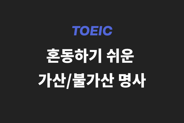 토익 시험에서는 가산명사와 불가산명사를 구분하는 문제가 자주 출제되니 반드시 알아두세요.
