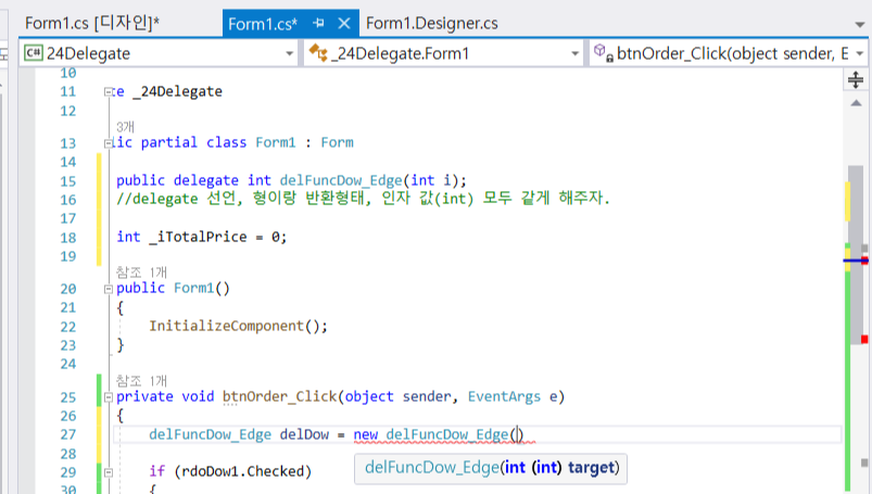 - 선언한 delegate 변수 생성
