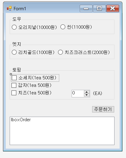 strOrder = "도우를 선택하지 않았습니다. ";