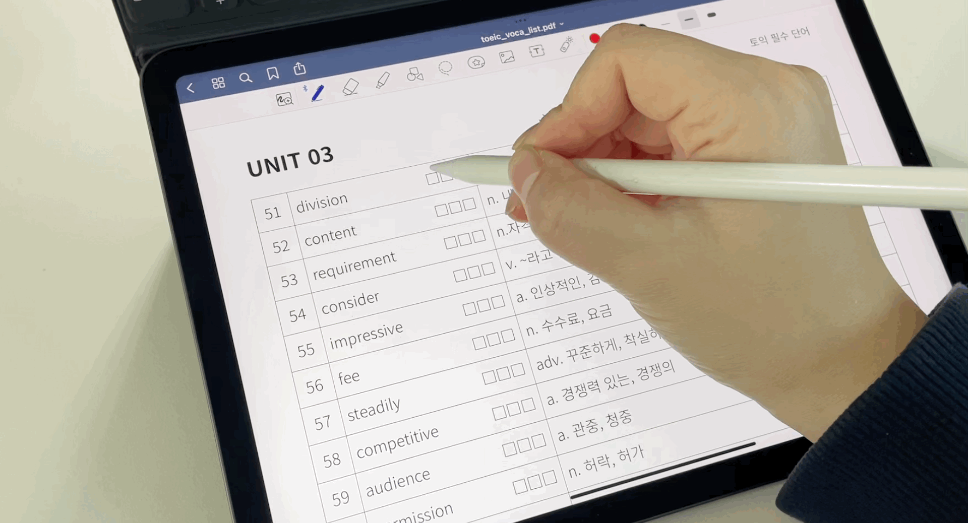그래서 단어 암기를 틈틈히 할 수 있도록 디지털 파일로 제작하였습니다. 폰이나 태블릿에 다운받아둔다면 등하교길이나 출퇴근길에 가볍게 보면서 외우고, 복습할 수 있습니다.