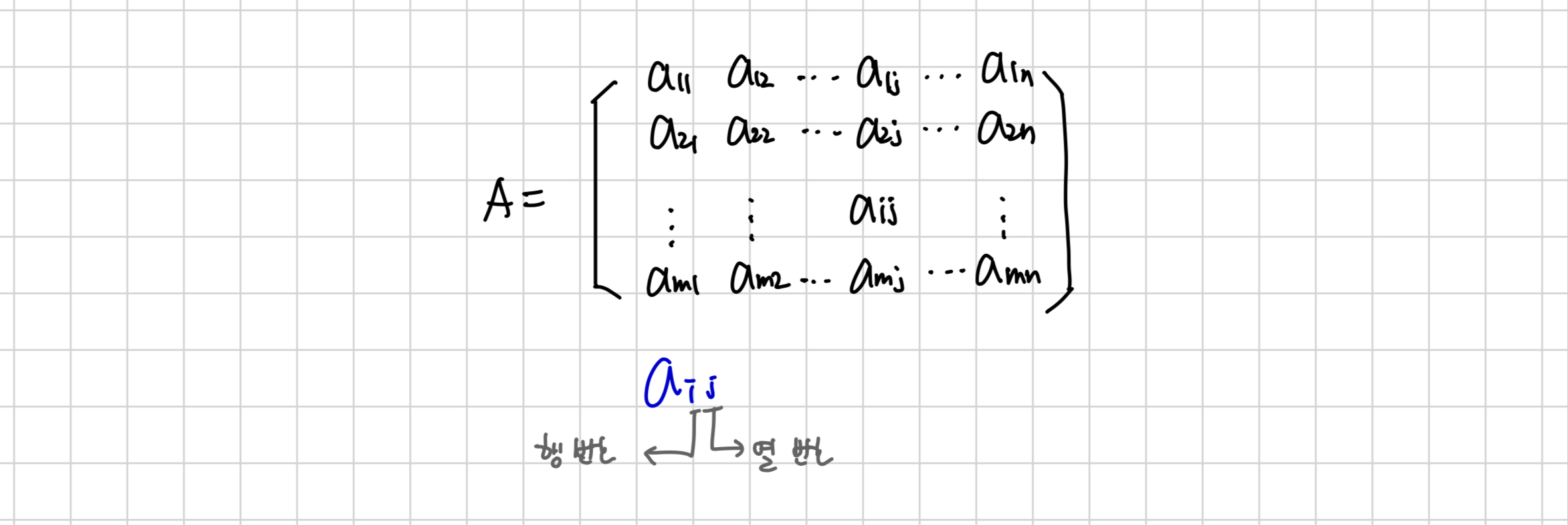 행렬 A의 i행과 j열이 겹쳐지는 부분에 있는 성분을 행렬 A의 (i, j) 성분이라고 한다.