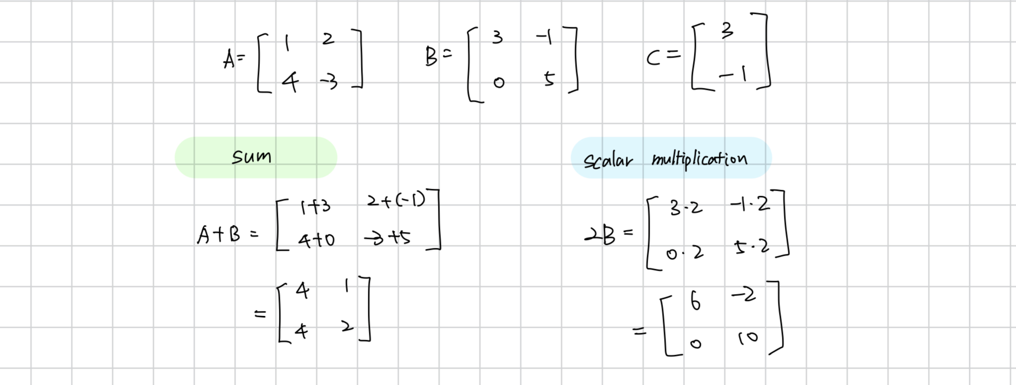 두 행렬의 합은 대응되는 성분끼리의 합이다.