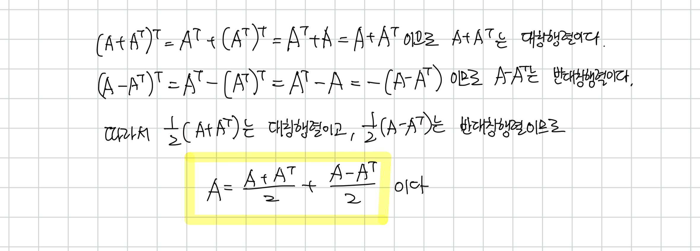 정사각행렬은 대칭행렬과 반대칭행렬의 합으로 나타낼 수 있다.