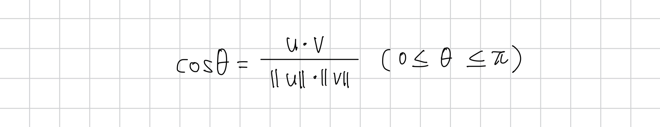 0이 아닌 두 벡터가 주어졌을 때, 두 벡터 사이의 코사인 값을 다음과 같이 구할 수 있다.
