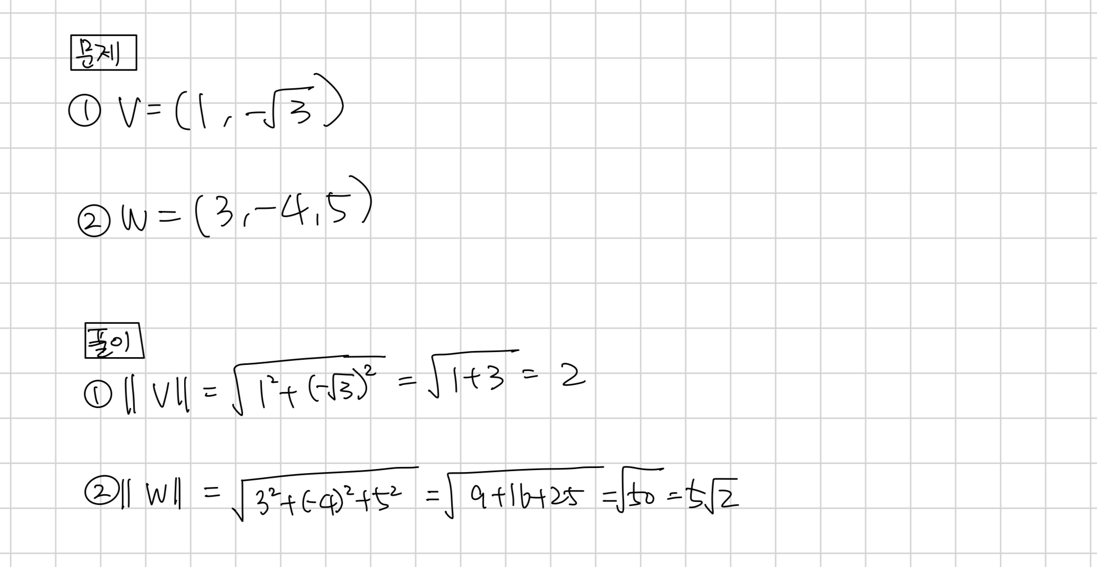 벡터 v의 크기를 노름(norm)이라 하고, || v ||로 나타낸다.