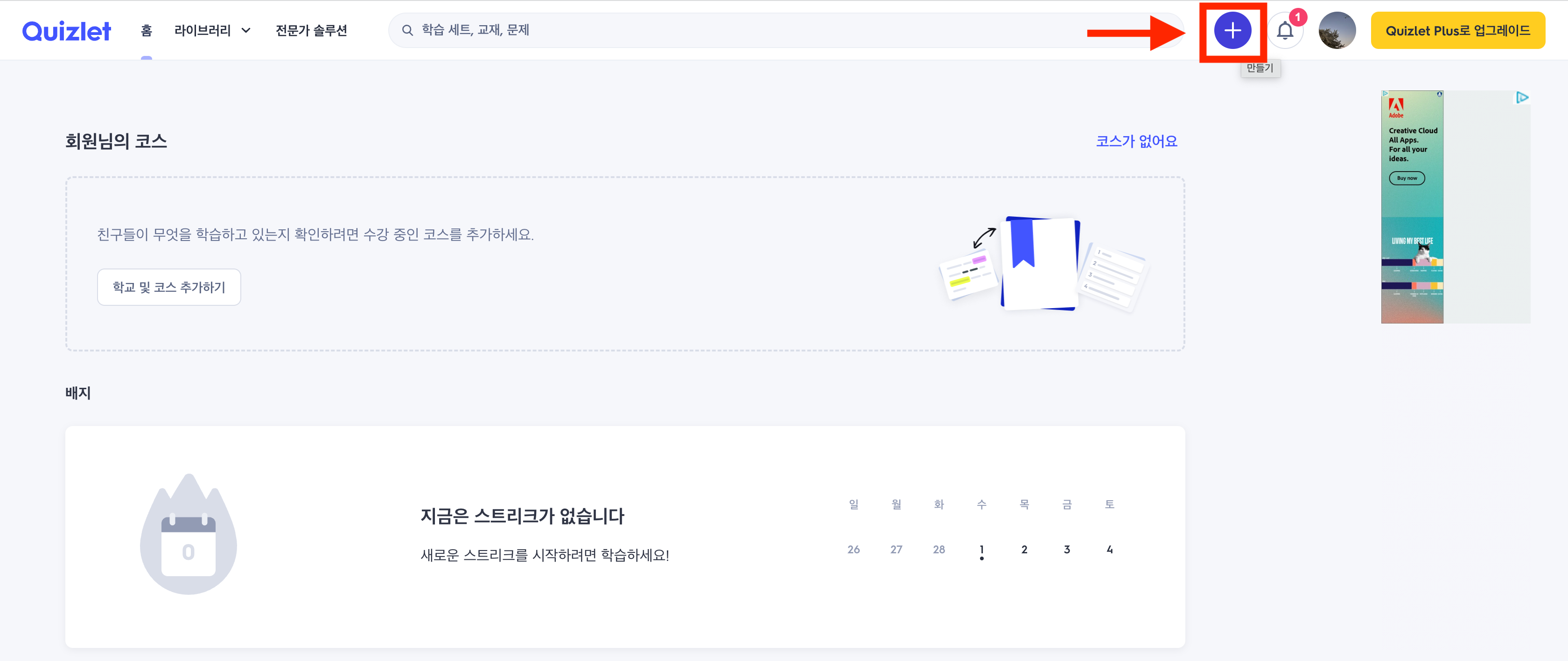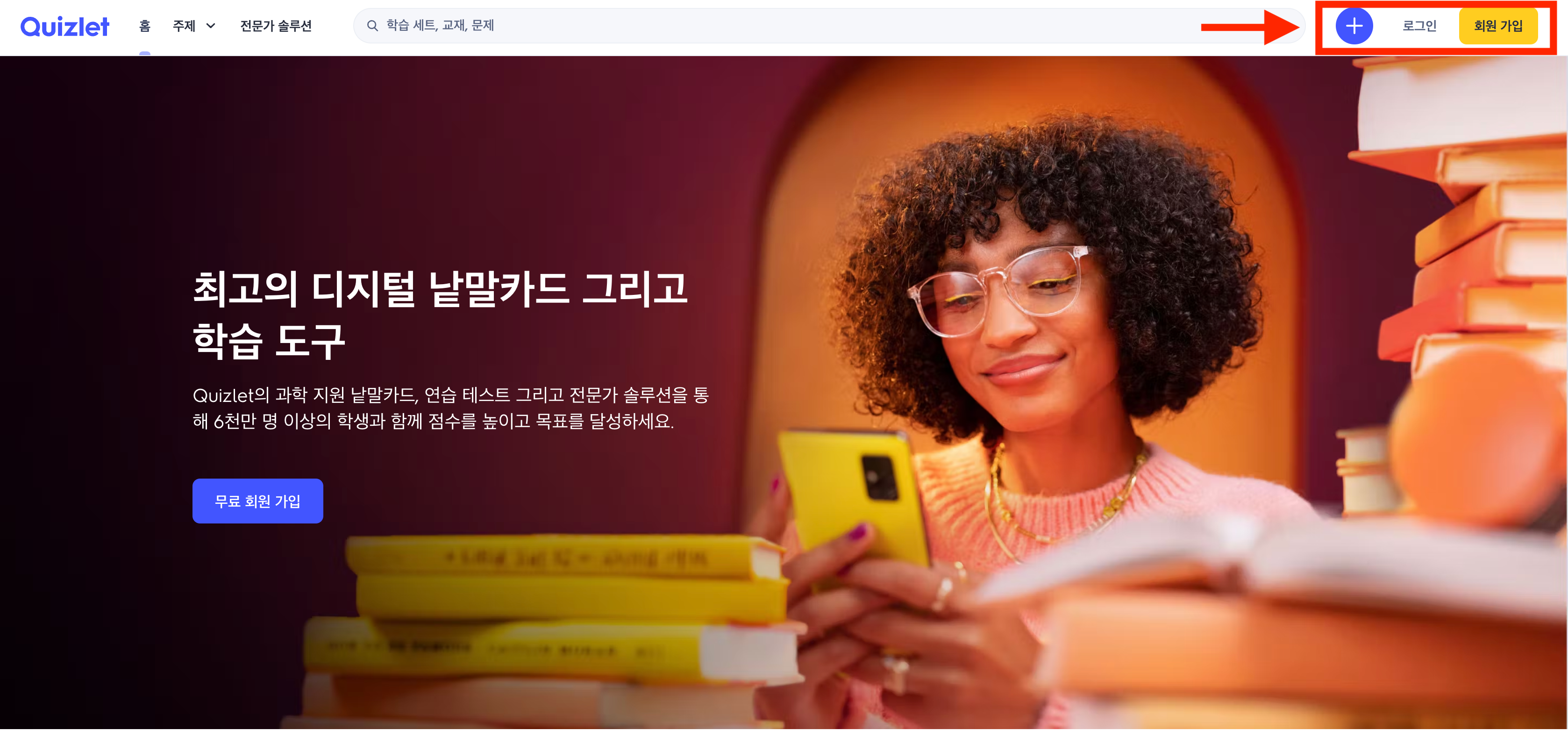 1. 퀴즐렛(Quizlet) 홈페이지에 접속합니다.