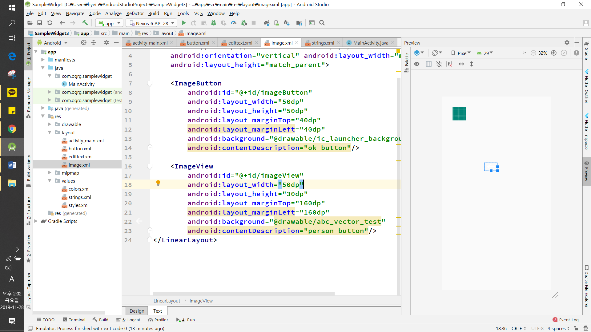 - 이미지뷰와 이미지 버튼은 이미지를 화면에 표시할 때 사용하는 가장 간단한 위젯이다.