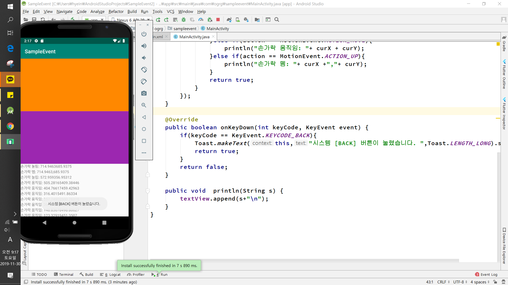 - 사용자의 화면 터치에 대한 이벤트를 처리해야 여러 기능을 구현할 수 있다