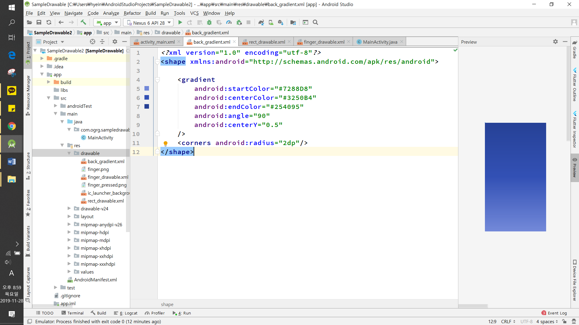 - 앱의 배경색에 그러데이션 효과 주기 : <gradient> 태그 사용하기
